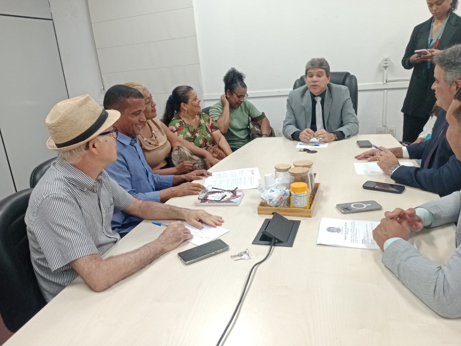 Os diretores do SINDPREV, Ronaldo Alcântara e Manassés de Santana, juntamente com servidores/as auxiliares e técnicos/as em Enfermagem do município de Maceió, estiveram reunidos com os vereadores Jônatas Omena e Samyr Malta, presidente e vice-presidente da Comissão de Administração e Assuntos ligados ao Servidor Público da Câmara Municipal de Maceió.